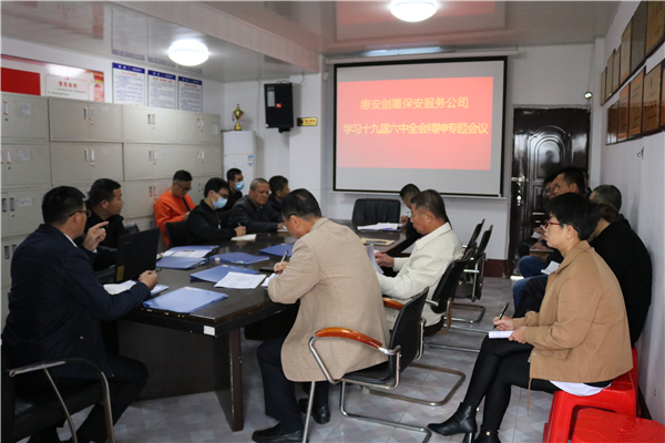 近日,惠安剑盾党支部按照集团党委关于深入学习贯彻十九届六中全会精神的文件要求,把深入学习十九届六中全会作为党员队伍思想政治建设的一项重要任务,11月23日上午,支部书记陈杰组织公司部门负责人、支部党员召开理论学习会议,专题学习党的十九届六中全会精神,并开展学习交流。