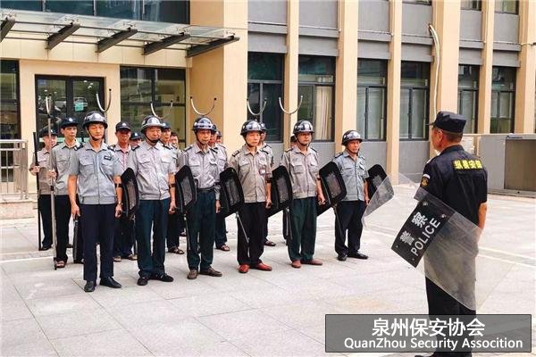 演练开始,全体保安人员手握钢叉、盾牌,公司训导教官邓经理为全体保安人员讲解防暴器械的使用进行讲解,在邓经理的口令指导下,全体保安人员都认真地完成了演练。