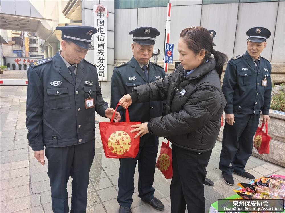 在新春佳节即将来临之际,国安保安工会委员带着满满的关爱与祝福,分别前往泉州、晋江、南安电信保安队,对共计 358 人次的保安员进行了亲切慰问。