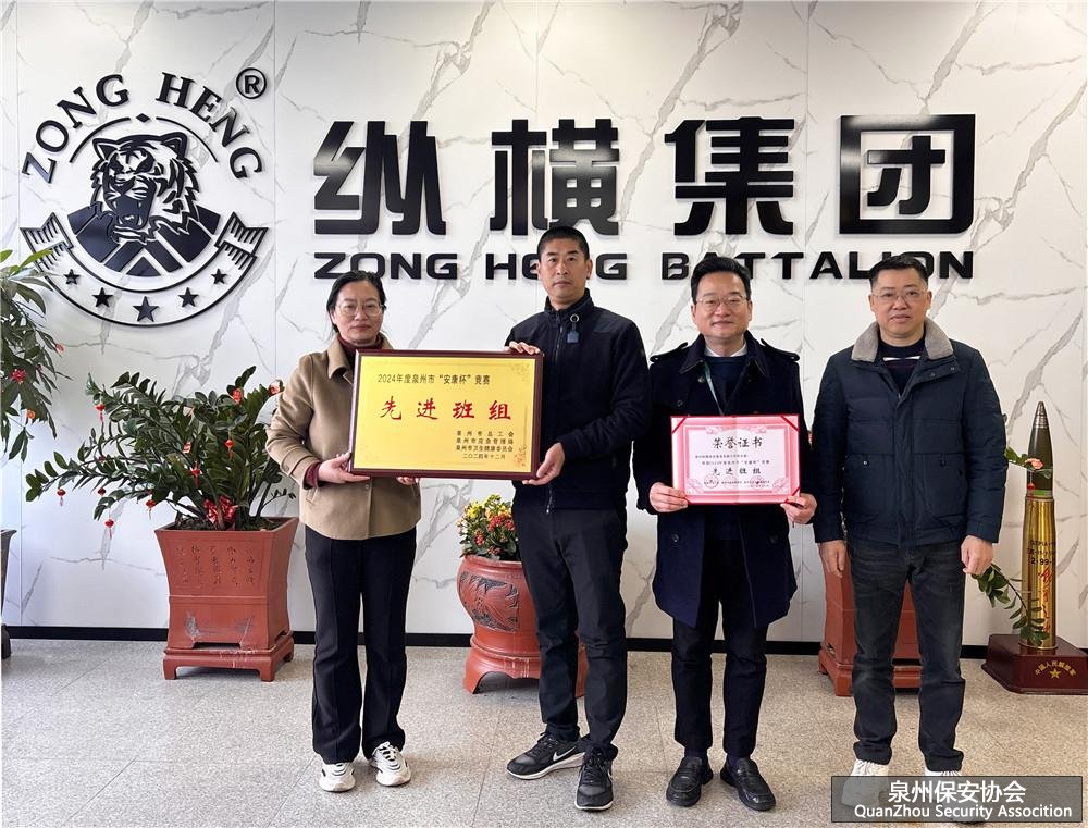 泉州市“安康杯”竞赛由泉州市总工会、泉州市应急管理局、泉州市卫生健康委员会联合举办,是全市推动安全生产与职业健康工作的重要平台。赛事以“安全发展、生命至上”为核心,通过表彰在安全生产管理、职业健康保护、风险防控等领域表现突出的集体与个人,引导企业强化主体责任,提升安全管理水平,增强职工健康保障能力,助力构建安全、健康、和谐的生产环境。经过严格评审,泉州纵横保安服务有限公司保安部凭借扎实的安全管理、完善的制度建设以及出色的工作表现,在众多参赛班组中脱颖而出,荣获“先进班组”称号。