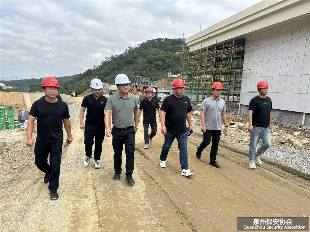 中秋国庆临近,为保障民生工程进度、筑牢施工安全防线,晋江市建投控股集团董事长陈奕友带队前往殝安殡仪迁建项目建设现场,开展专项安全检查工作。本次检查聚焦工程进度推进、装修施工细节把控、安全生产管理、质量管理落地等核心环节,期间还与施工单位深入交流,广泛听取意见建议。晋江市创和保安服务有限公司总经理王琳、晋江市臻安殡仪服务有限公司执行董事肖成海全程陪同参与视察。